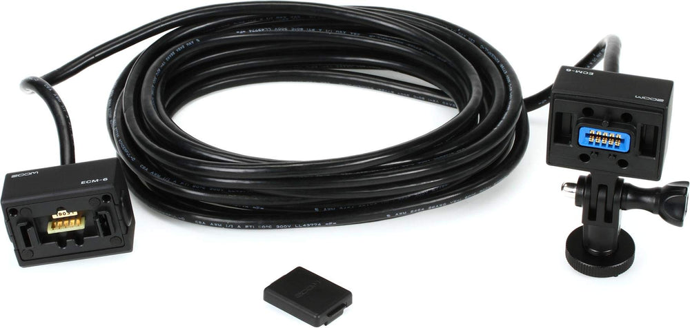 Give your microphone some mobility. The ZOOM ECM-6 is a six-meter-long extension cable for your ZOOM F8 MultiTrack Field Recorder, H5 Handy Recorder, H6 Handy Recorder, and Q8 Handy Video Recorder. With the built-in three-prong action mount and the included hot shoe adapter, you can place your ZOOM Capsules on tripods, boom poles, DSLRs, and much more without sacrificing your ability to monitor recordings and adjust your settings.