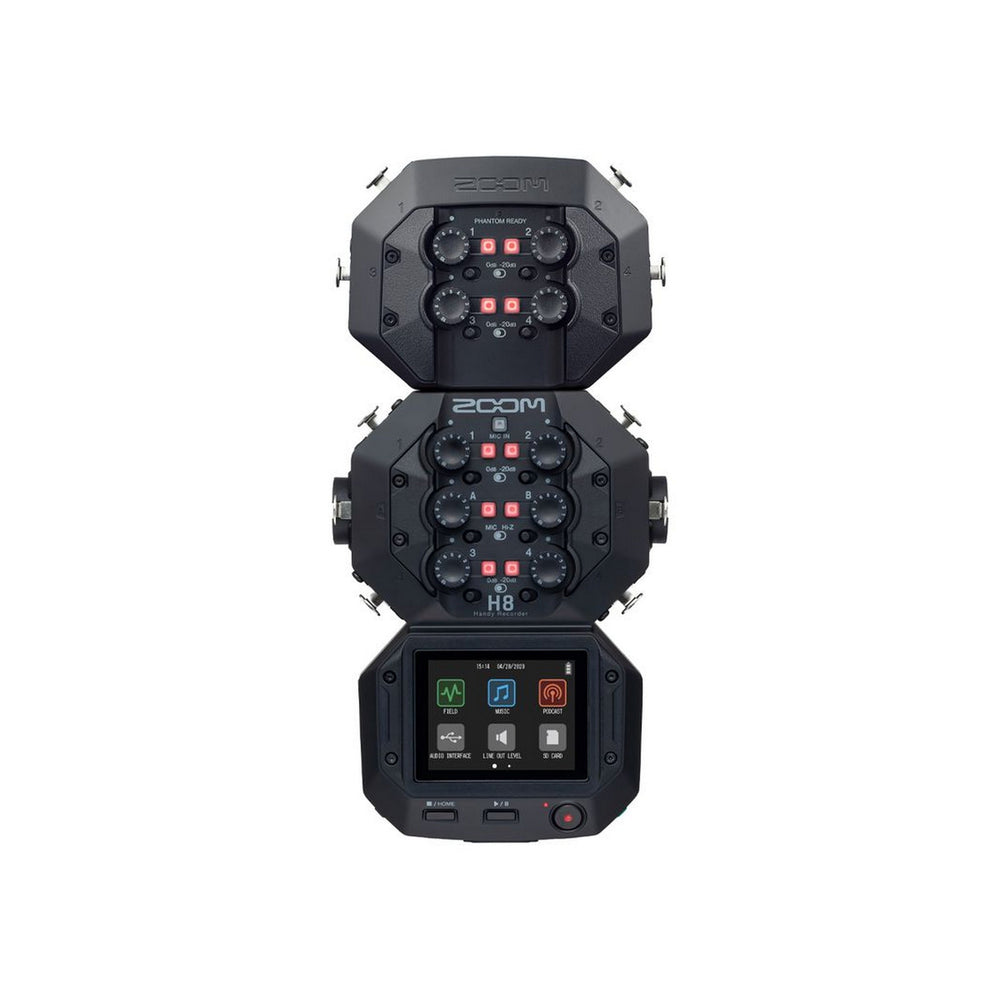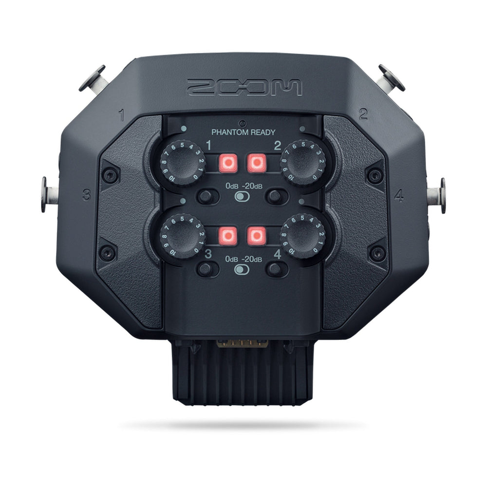 The ZOOM EXH-8 is a modular expander capsule for compatible Zoom recorders (e.g., H8), adding four balanced XLR mic inputs with individual gain controls and –20 dB pad switches. Phantom power can be supplied to condenser microphones via an external power source, making the EXH-8 ideal for field recording, location sound, and multitrack productions.