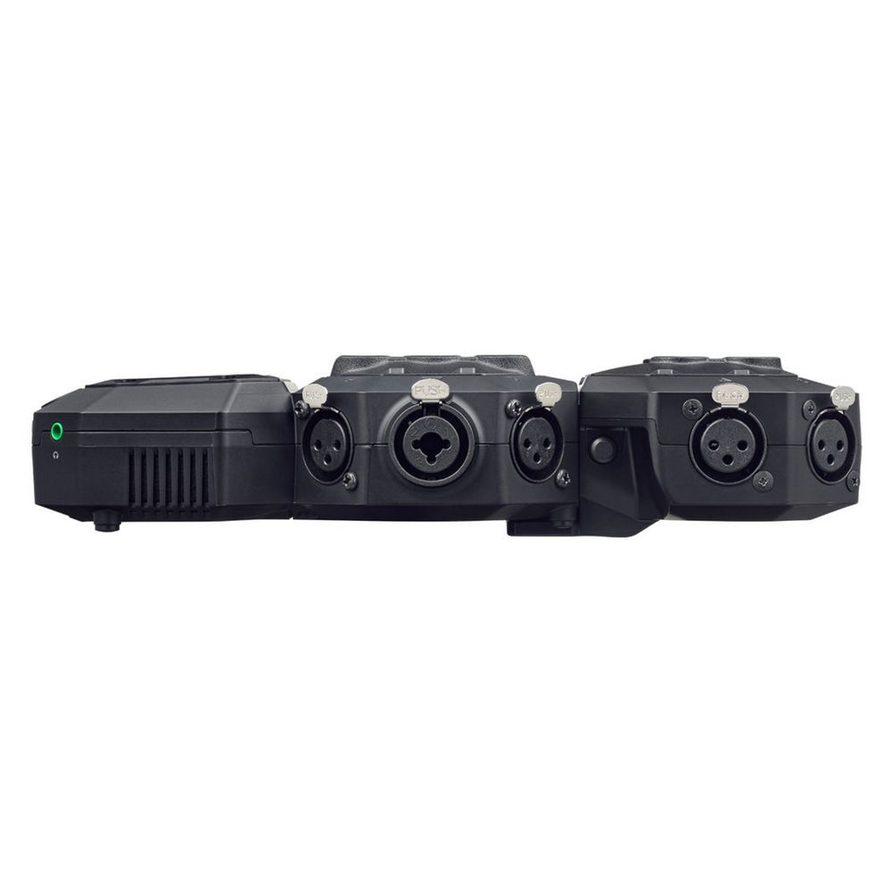 Mounting effortlessly onto the recorder’s capsule port, the EXH-8 features dedicated track on/off buttons, LEDs, and tactile volume knobs for each channel. The pad switches prevent clipping when connecting line-level sources, while its compact design maintains the recorder’s portability.