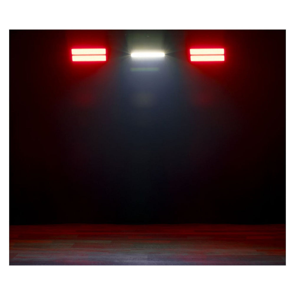 The ADJ Jolt Panel FXIP IP65 CW and RGB LED Strobe with Wired Digital Communication Network redefines versatility in stage lighting. This innovative fixture combines the capabilities of a strobe, wash light, and eye candy effects into a single, compact unit. At its core are 800 x 0.5-Watt RGB SMD LEDs, delivering a spectrum of vibrant colors and stunning chase patterns. But that's not all. A central strip of 48 x 5-Watt cool white SMD LEDs adds a classic strobe effect, ensuring you have the perfect tool for any lighting mood.