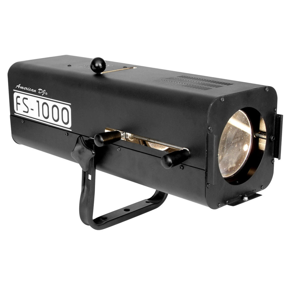 The American DJ FS-1000 is a high-powered, affordable followspot. It uses a new specially designed reflector that produces the same or more light output as a 1,000W lamp. It uses a bright 575W halogen lamp
