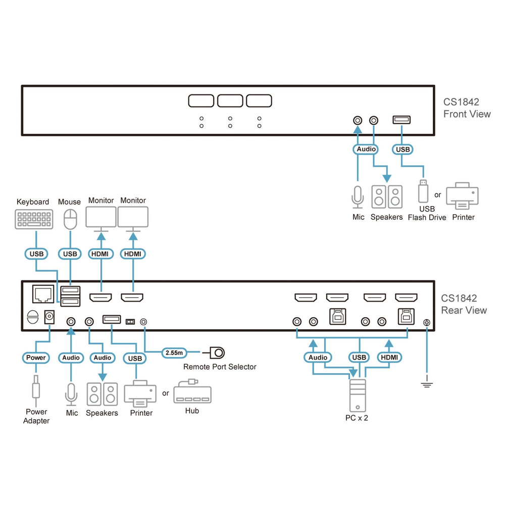 ATEN CS1842 2-Port USB 3.0 4K HDMI Dual Display KVMP Switch