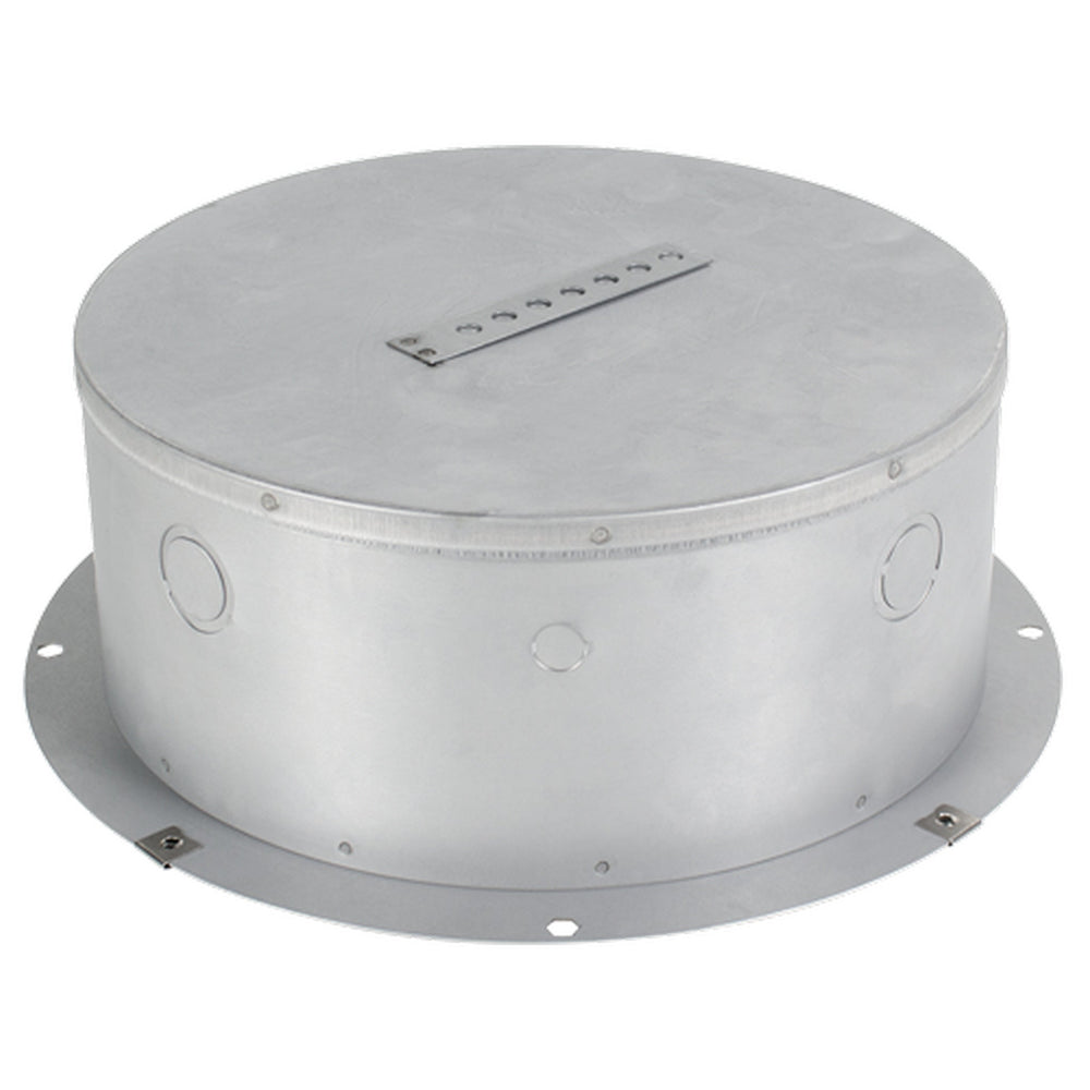 The AtlasIED 95‑8 Recessed Round Enclosure is a heavy-duty, cost-effective back box engineered for 8″ loudspeaker installations in commercial and architectural spaces. Made from welded cold-rolled steel (CRS) with an acoustical undercoating and internal patch-jute lining, it minimizes mechanical resonance and enhances sound quality. Featuring compound knockouts (½″–¾″), a perforated safety strap, and four 8–32 J‑Clips, it simplifies installation and speaker attachment.