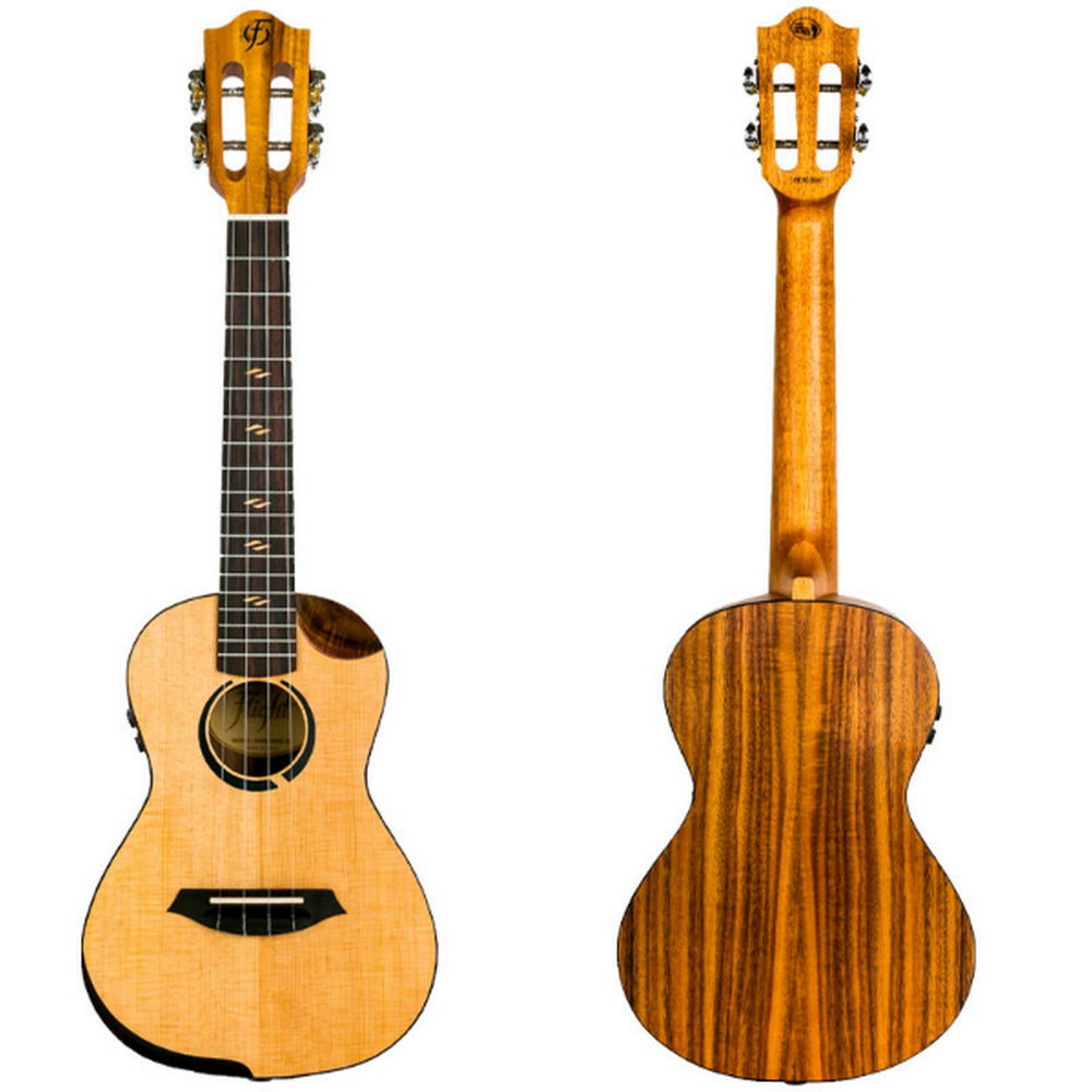 The Flight Victoria Soundwave Concert Ukulele combines our incredible Victoria concert ukulele with the amazing Soundwave active pickup system. The Victoria features a solid spruce top and laminate acacia back and sides. The amazing Flight Soundwave Pickup System adds acoustic or amplified effects, with or without plugging in. Complete control of the effects is located on the ukulele itself! The ukulele also includes an armrest and scalloped cutaway, offering players a comfortable and pleasurable playing experience. The Victoria is outfitted with an ebony fretboard and Japanese fluorocarbon strings, and is crowned with a stunning slotted headstock. With all of its attributes and striking features, the Flight Princess Victoria has everything an advanced player could desire.
