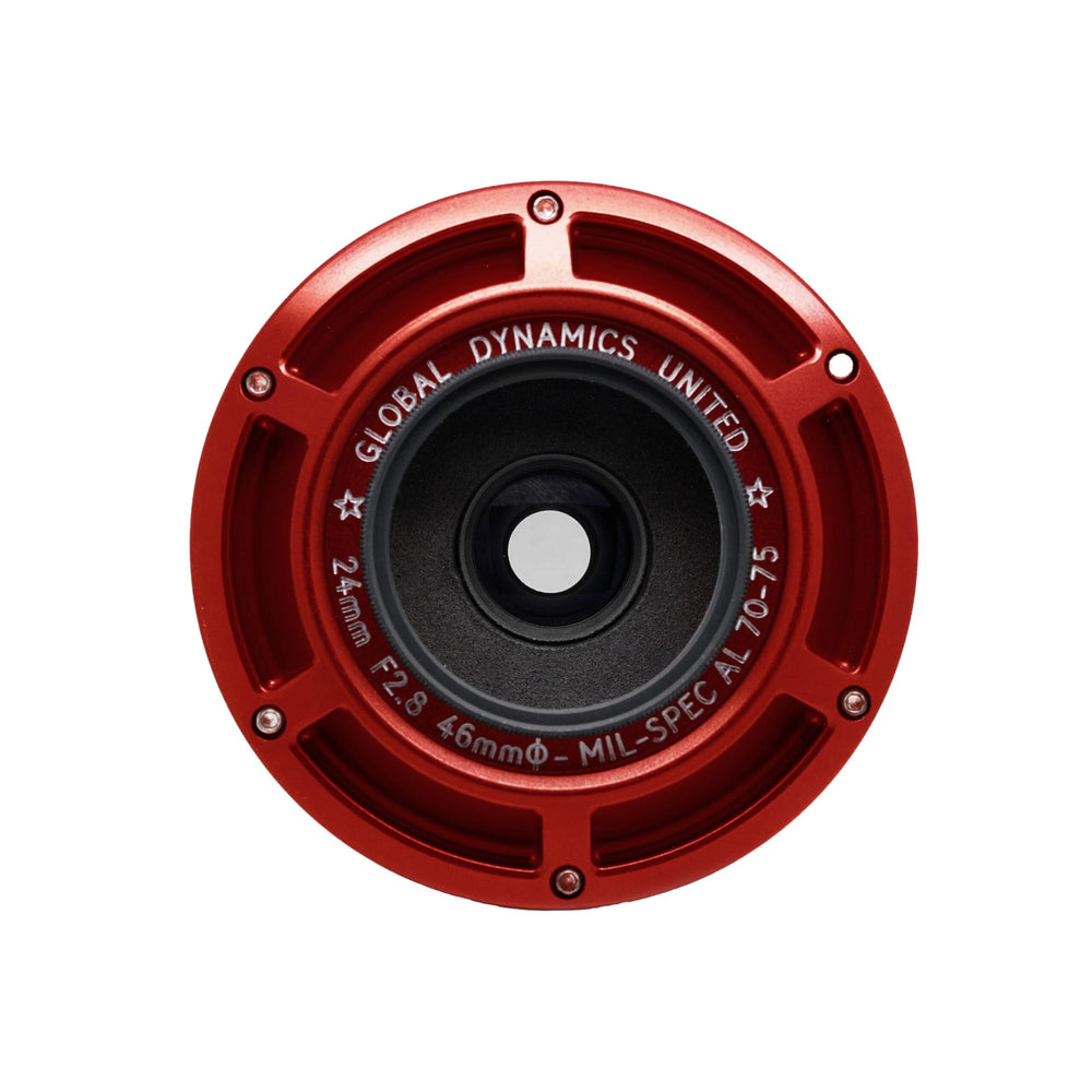 The heart of the GDU 24mm is a Canon 24mm F2.8 optical block stripped down to its core and then built back up with an armored precision machined mil spec 7075 Aluminum housing. The manual focus ring has been completely removed to avoid accidental focus adjustments and all movement is regulated to it's internal STM motors for remote focus and iris control. An electronic Stainless Steel Canon EF mount finishes off the rear and out front the GDU 24mm Includes a 37mm protective UV filter inset within a 46mm non-threaded protective ridge. Specs -Super 35mm APS-C coverage in an strong, lightweight and slim design. Perfect for RED cameras with Canon Mount, Canon 7D and other Canon APS-C cameras, Sony Nex / A7 with AF Canon adapter etc. Not for use on Full Frame Canon 5D. -STM stepper focus motor provides quiet and smooth continuous AF or remote MF during video recording on any camera that supports CANON AF.