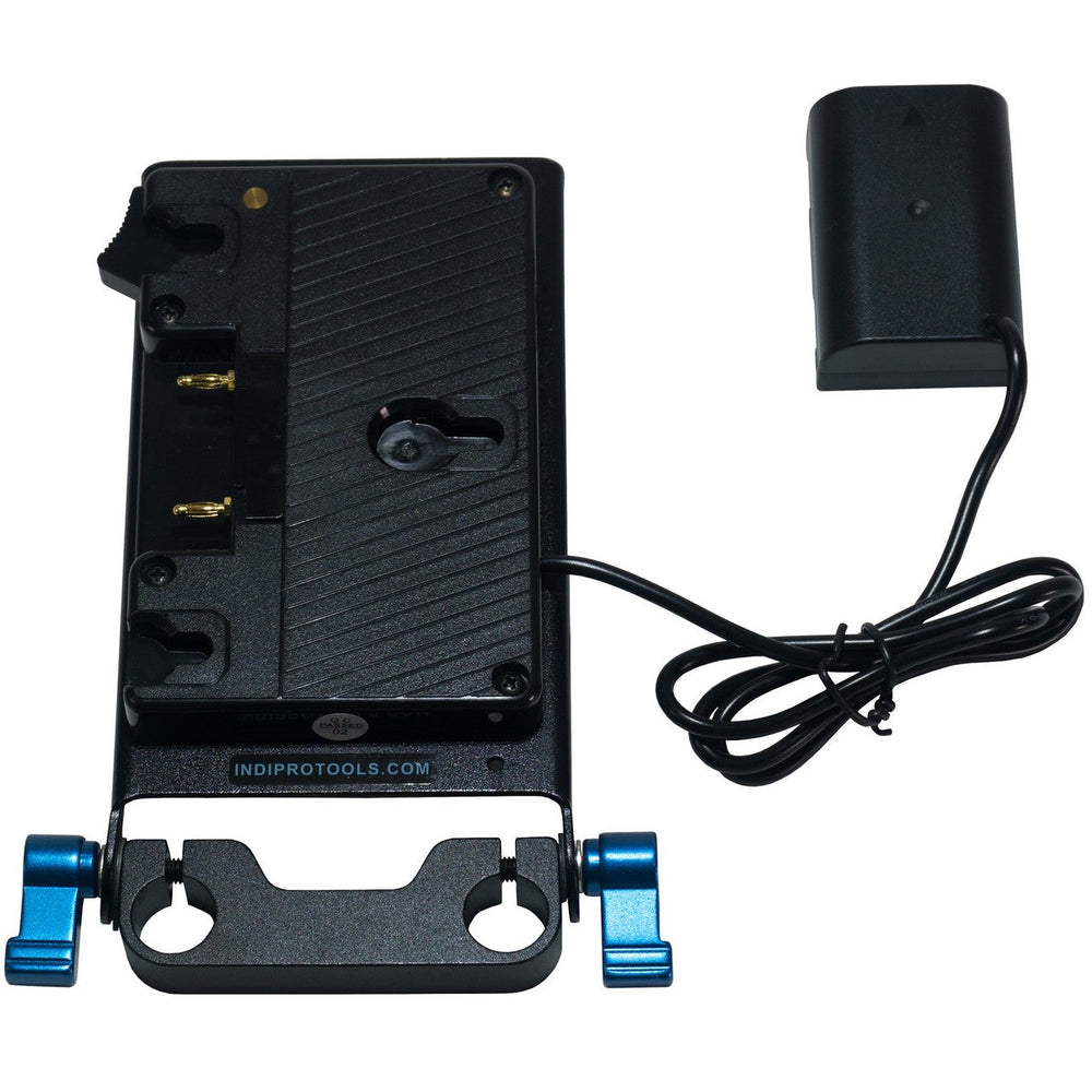 Power your Panasonic GH 4/5 from a Gold-Mount battery using this Gold-Mount Plate. The plate features a Panasonic DMW-BLF19 type dummy battery at the end of an integrated 24" cable. This dummy battery will work with the Panasonic GH camera series. Other accessories that require 12-16 volts of power can be connected to the built-in D-Tap on the plate. For rig integration, this battery plate includes a 15mm LWS bracket for mounting on a lightweight 15mm compatible rod-based rig. In this configuration, the battery attached to the plate can be used as a counterweight for shoulder-mounted setups. Made in the USA.