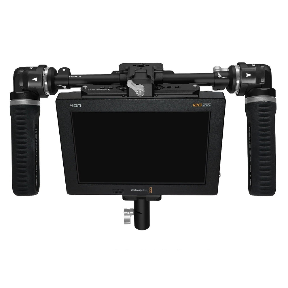 The Dual Video Village Monitor Kit is an upgraded version of the KONDOR BLUE Director's Monitor Pro kit. With its 2-inch cage rails, this dual monitor rig can be mounted to the top or bottom of your two monitors. You can then attach the Core Bracket using the NATO clamp, which is a branching point for the 18” PPSH 15mm rod that comes with a pair of Kondor Blue QR Rosette Hand Grips for quick adjustment of grip angles. The Core Bracket's 15mm rod mount features a unique dual clamping mechanism that prevents the monitor from slipping under its own weight.