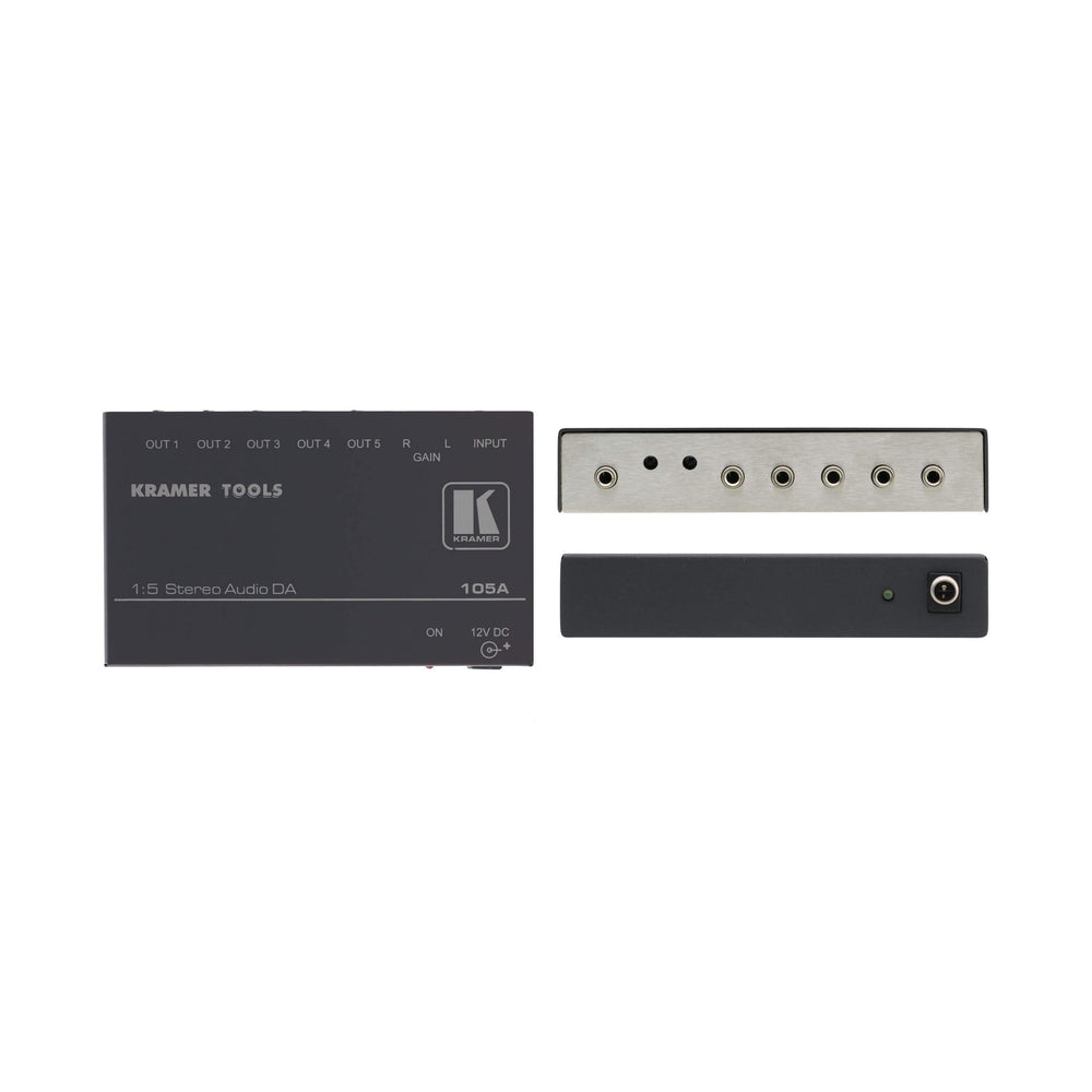 The Kramer 105A is a high-performance 1:5 distribution amplifier for composite video signals. Engineered for professional video applications, it takes one input and distributes the signal to five identical outputs with exceptional fidelity. Its compact design and durable construction make it ideal for use in studios, presentation systems, and video duplication setups.