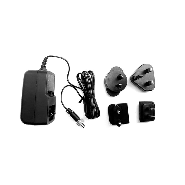 - Interchangeable AC adapter set (US, UK, EU, AU)