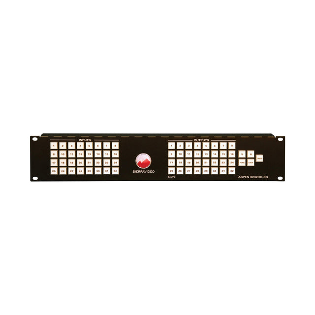 The Aspen 3232HD‑3G is a compact 2‑RU SDI matrix router supporting 32 input/output channels across SD‑SDI, HD‑SDI, and 3G‑SDI formats. It provides reliable routing for broadcast, AV, and production environments.