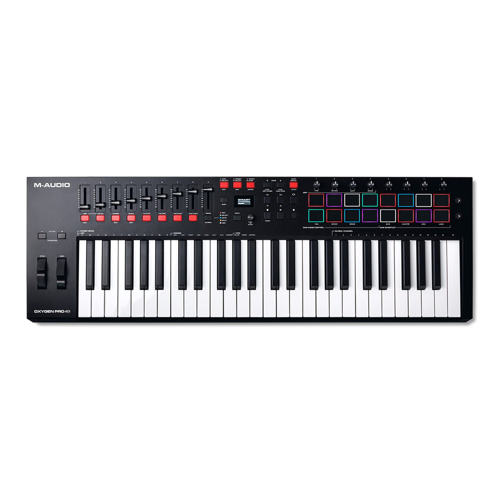 The Oxygen Pro 49 is a powerful, 49-key USB powered MIDI controller that allows you to create the music you want to make even easier! The new Oxygen Pro controllers open up worlds of expression and creativity and make bringing your production ideas to life more seamless than ever. Taking feedback from users and artists alike, these controllers are the ultimate studio and live performance tools, allowing you to keep your focus on creating music-not programming your software. It doesnāt matter if you want to create music on the go or in the studio, the M-Audio Oxygen Pro series is perfectly flexible for your workflow.