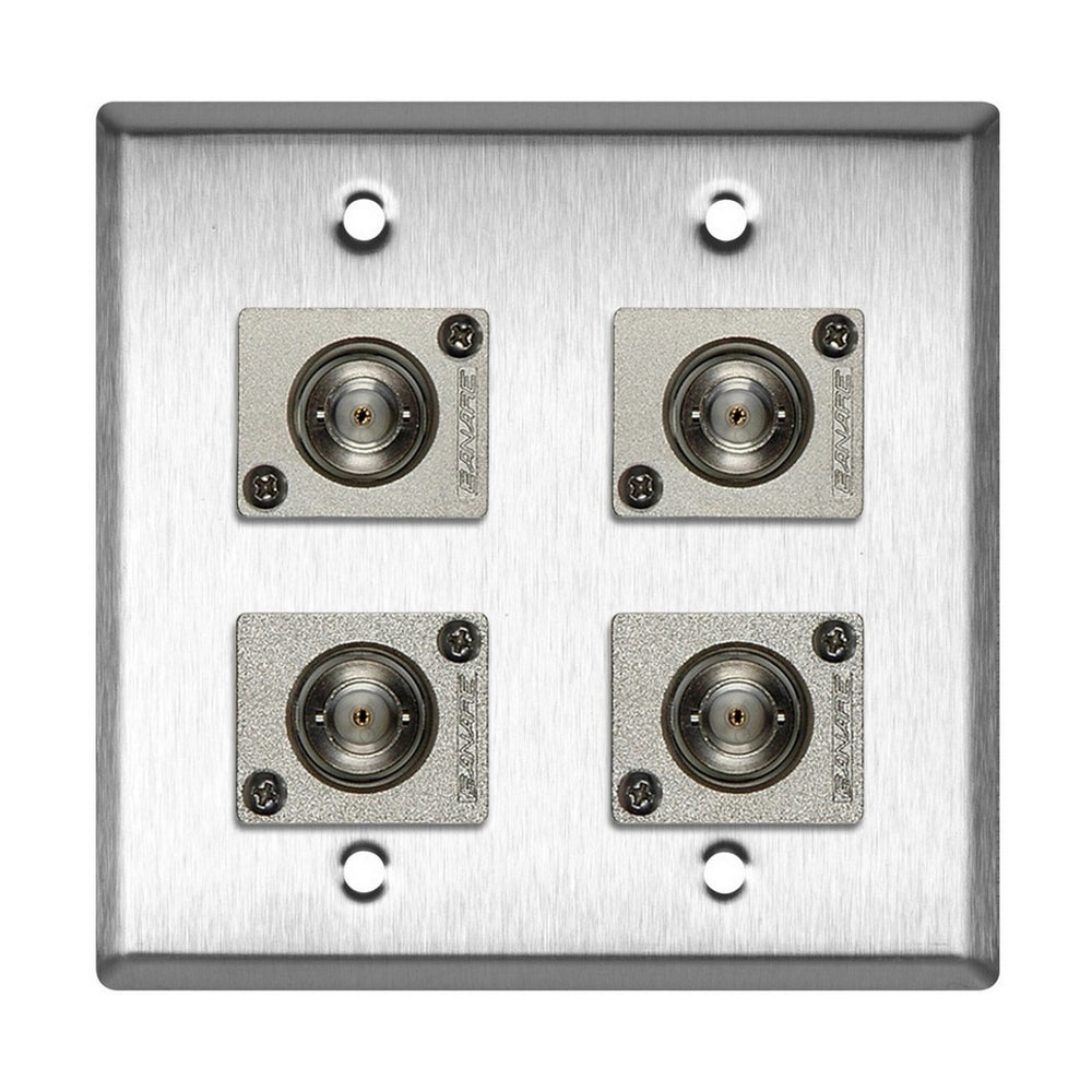 My Custom Shop WPL-2108 2-Gang Stainless Steel Wall Plate with 4 Canare BCJ-JRU Recessed BNC Barrels