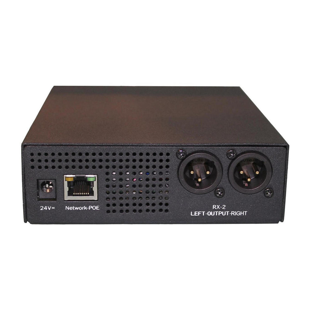 The myMix network can manage up to 500 audio channels which can consist of local inputs from myMix mixers, analogue or digital inputs to IEX16 input expanders, or stereo mixes from myMix mixers.The RX-2 is ideal for transporting a mix that is created on a myMix in one place via the network to another location, e.g. a musician on stage is creating a stereo mix and is sending that mix to the network. The RX-2 selects that mix signal and can add some extra channels like talkback or intercom from other sources; the output is then fed to a wireless transmitter for in-ear monitors. The optional RX-RM rack-mount kit allows to fit three RX-2 devices in 1U rack space.