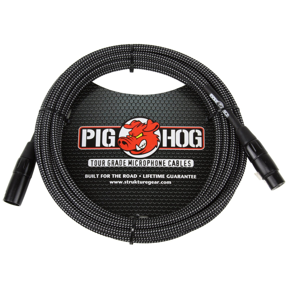 Pig Hog PHM10BKW Black and White Woven Microphone Cable, 10ft XLR