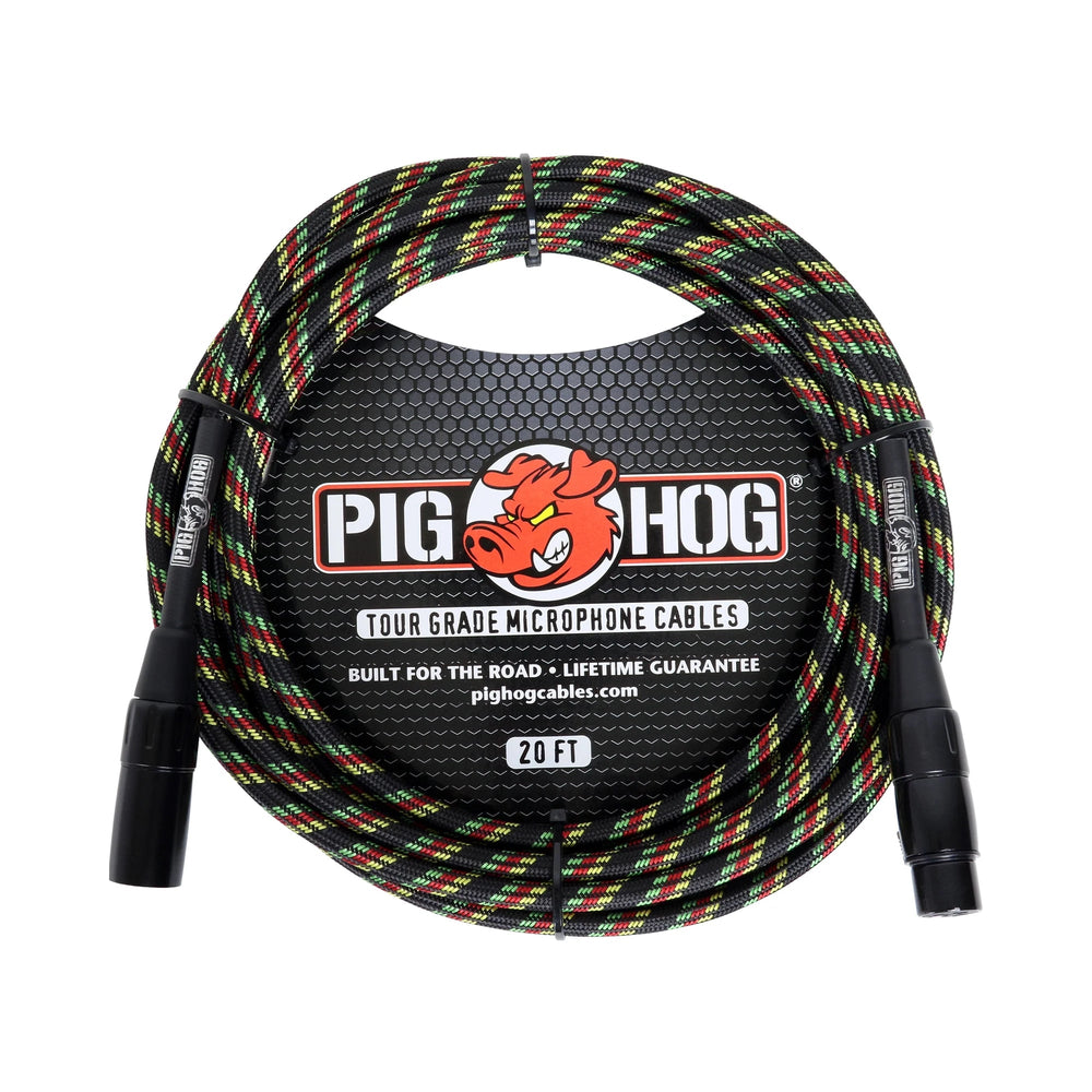 Pig Hog PHM20RAS "Rasta Stripes" Woven Microphone Cable, 20ft XLR