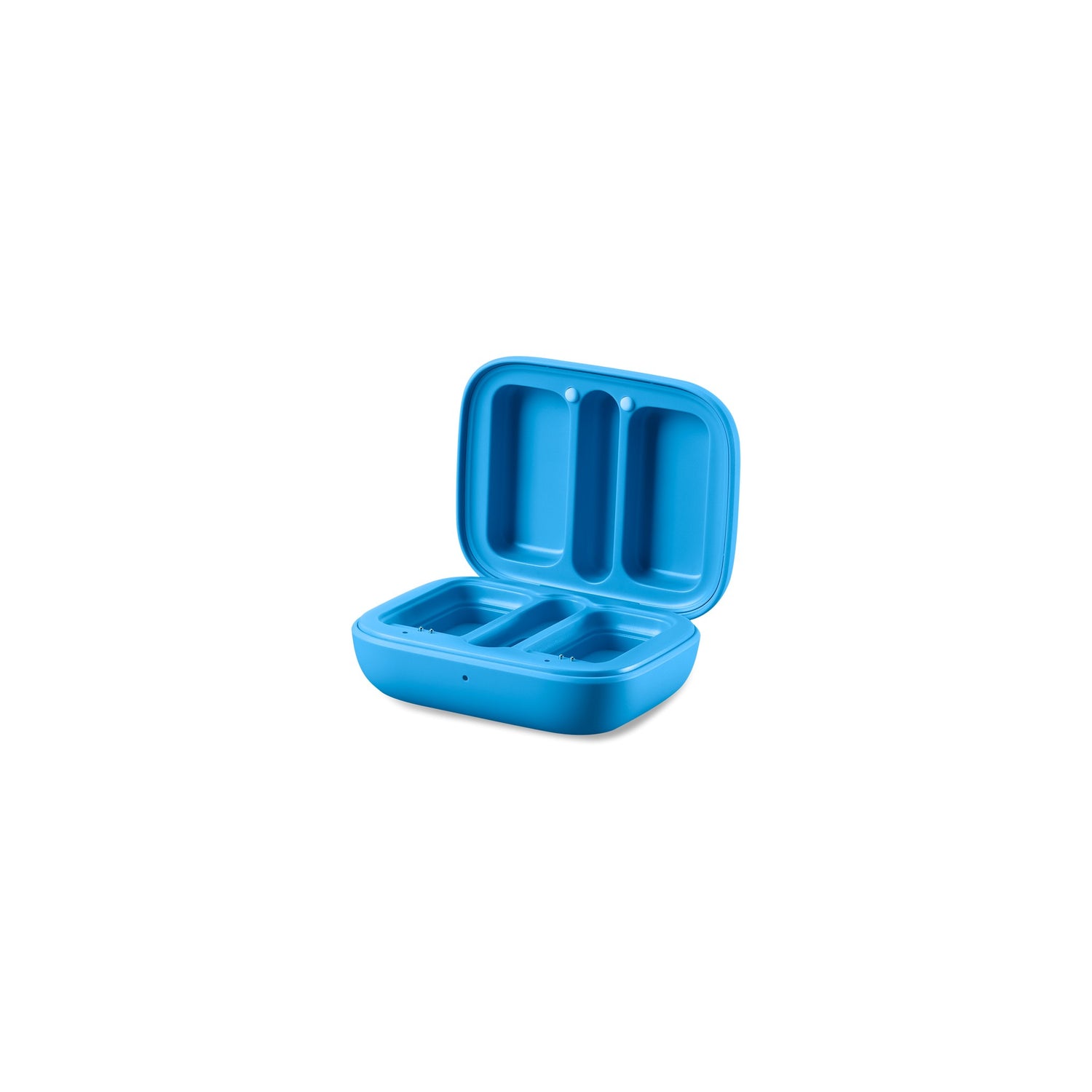 - TX: In-built rechargeable lithium-ion battery, charged via Pogo-pin contacts to Charging Case (5V, 0.1A)