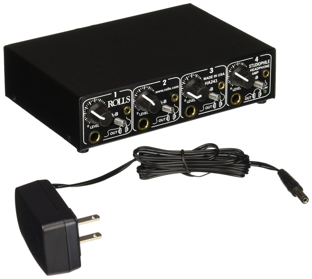 The HA243 is a high powered headphone amplifier with four 1/4? and 1/8? (3.5mm) headphone outs. The HA243 features an A-B switch for each channel to monitor either the A or B input with the flick of a switch!