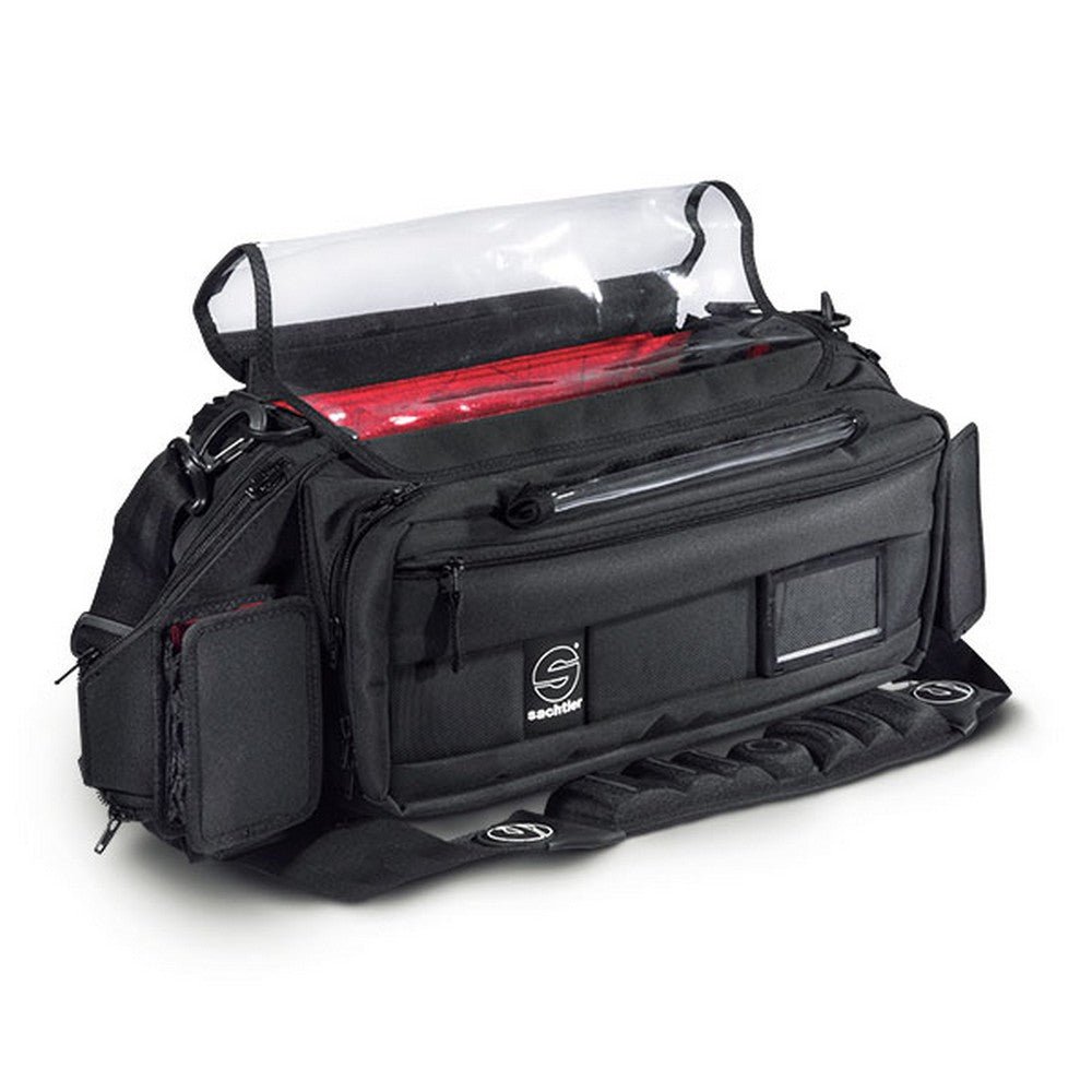 - Exterior front accessories pocket with detachable frame that holds up to 8 wireless receivers and transmitters