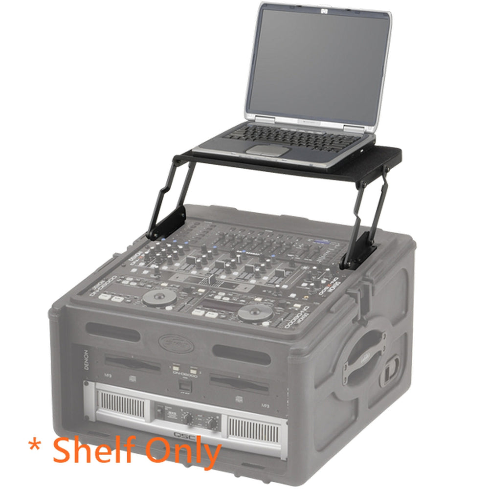 The AV-8 is an 8U retractable shelf designed to be used with our 1SKB-R102, 1SKB-R104, 1SKB-R106 and 1SKB19-R1208 products. Not only is the AV-8 a great accessory/add-on for those products, but also can be mounted to any slant top mixer case with at least 8U of rack space, including our 1SKB-82DJ, 1SKB-84DJ and 1SKB-106DJ products. The AV-8 is the perfect solution for a laptop or projector.