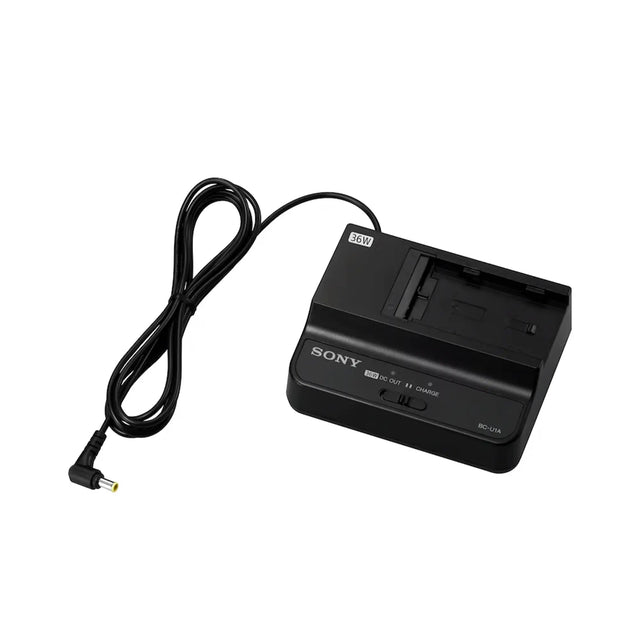 The Sony BCU1A Battery Charger/AC adaptor for Lithium-Ion Battery is designed for charging BP-U90, BP-U60/U60T, and BP-U30 Lithium-ion batteries efficiently. With a built-in AC adaptor, the BC-U1A provides a 12 V DC power output for convenient charging.