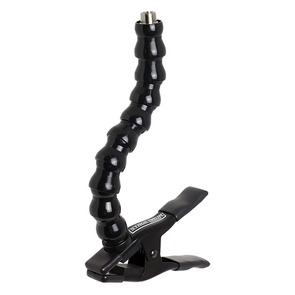 Clamp a microphone anywhere! The Ninja Clamp mic mount allows you to place and position a microphone in tight or unique situations. Twelve inches of scorpion flex stays where you position it. Industrial steel, tension-loaded 6 clamp base with dual step, anti-mar jaws opens to 2. Comes with 5/8 mic tip threads (3/8 available upon request). Stage or studio, the MIC-12-CB will not let you down. Microphone and clip not included.