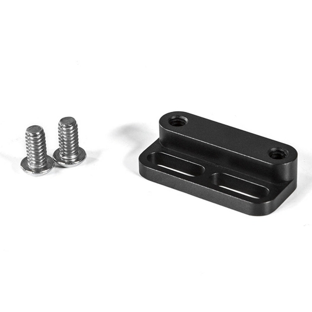 Handle Adapter allows attachment of Top Handle with fixed 36mm center to center screw spacings to any screw spacing up to 36mm. Slotted design allows use of Wooden Camera Top Handles on third parts accessories and cages.