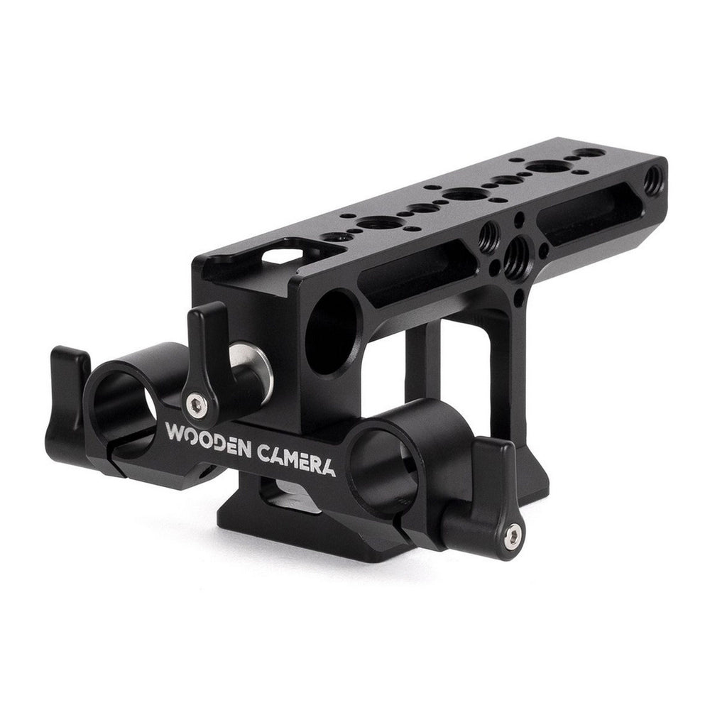 Included Top Handle slides into ARCA slot and leaves camera control screen easily accessible. Shoe mount on top can hold on-camera lights and microphones and side 15mm opening can hold UVF Mount V2. 1/4-20 and 3/8-16 ARRI accessory mount in several places and 15mm lightweight rod bracket on front for attaching lens motors and more.